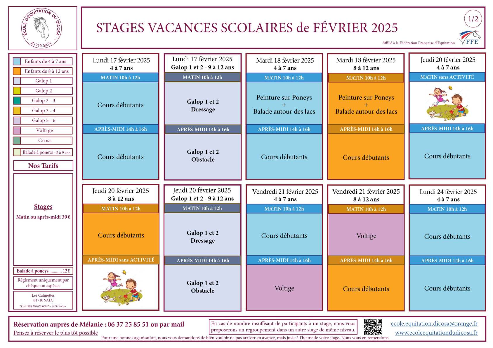 Pensez à reserver le plus tôt possible, par mail ecole.equitation.dicosa@orange.fr