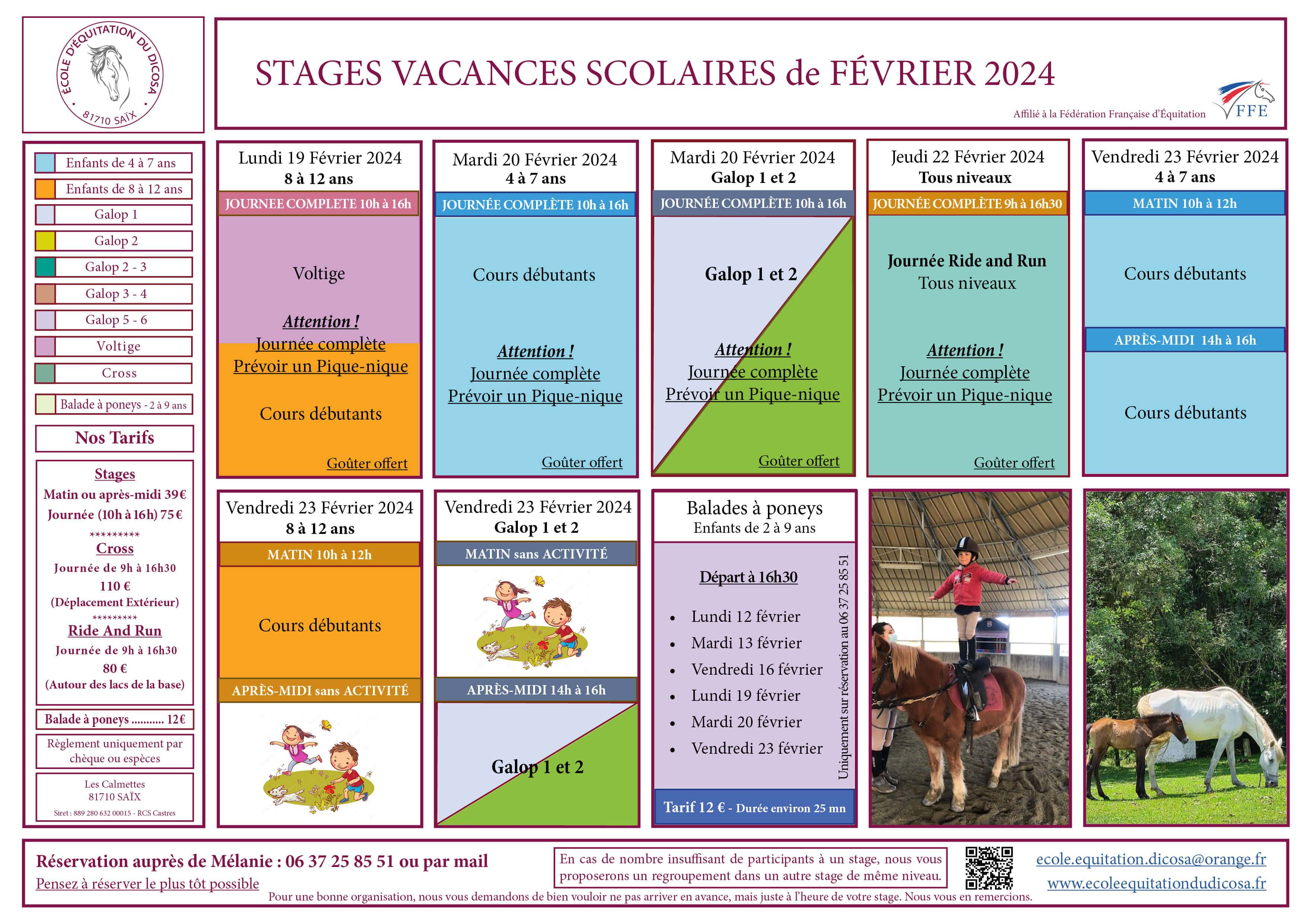 Pensez à reserver le plus tôt possible, par mail ecole.equitation.dicosa@orange.fr