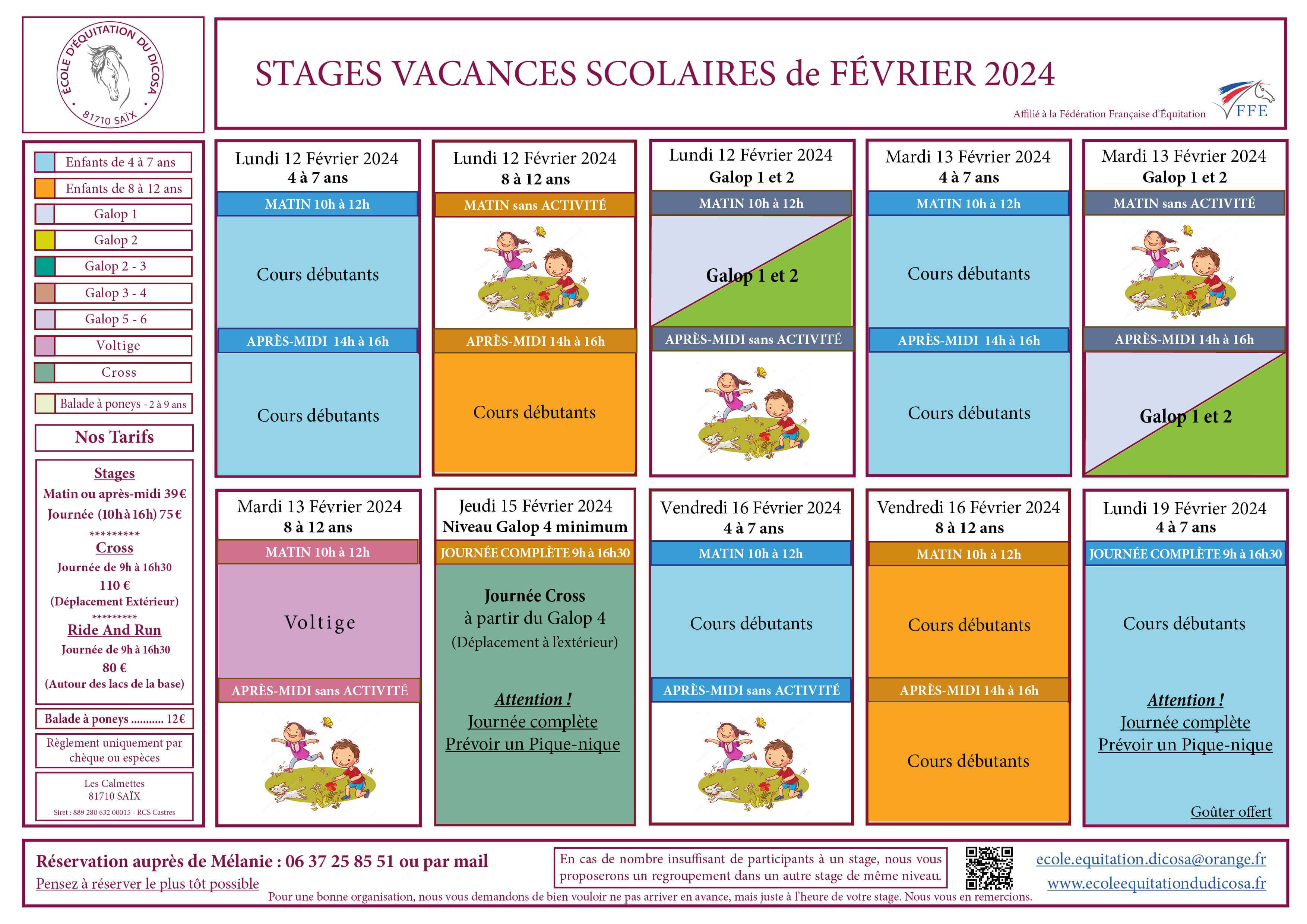 Pensez à reserver le plus tôt possible, par mail ecole.equitation.dicosa@orange.fr